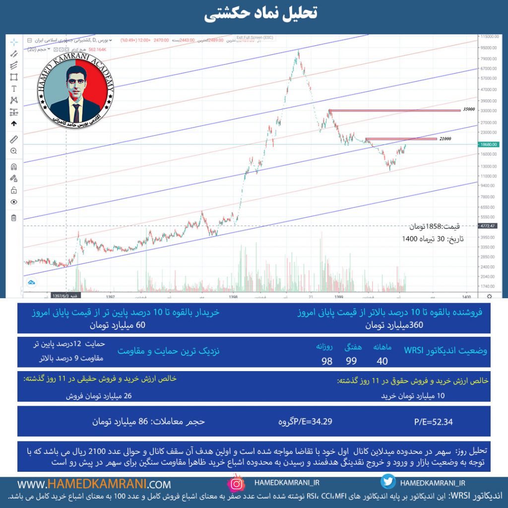سلب مسئولیت : این اطلاعات فقط تحلیل نماد حکشتی و دیدگاه تیم تحلیلی مجموعه می باشد و به هیچ عنوان سیگنال خرید یا فروش محسوب نمی شود لطفاً بر اساس تحلیل و برداشت شخصی خود اقدام به خرید و فروش نمایید ، این مجموعه نسبت به سود و زیان شما هیچگونه مسئولیتی ندارد.